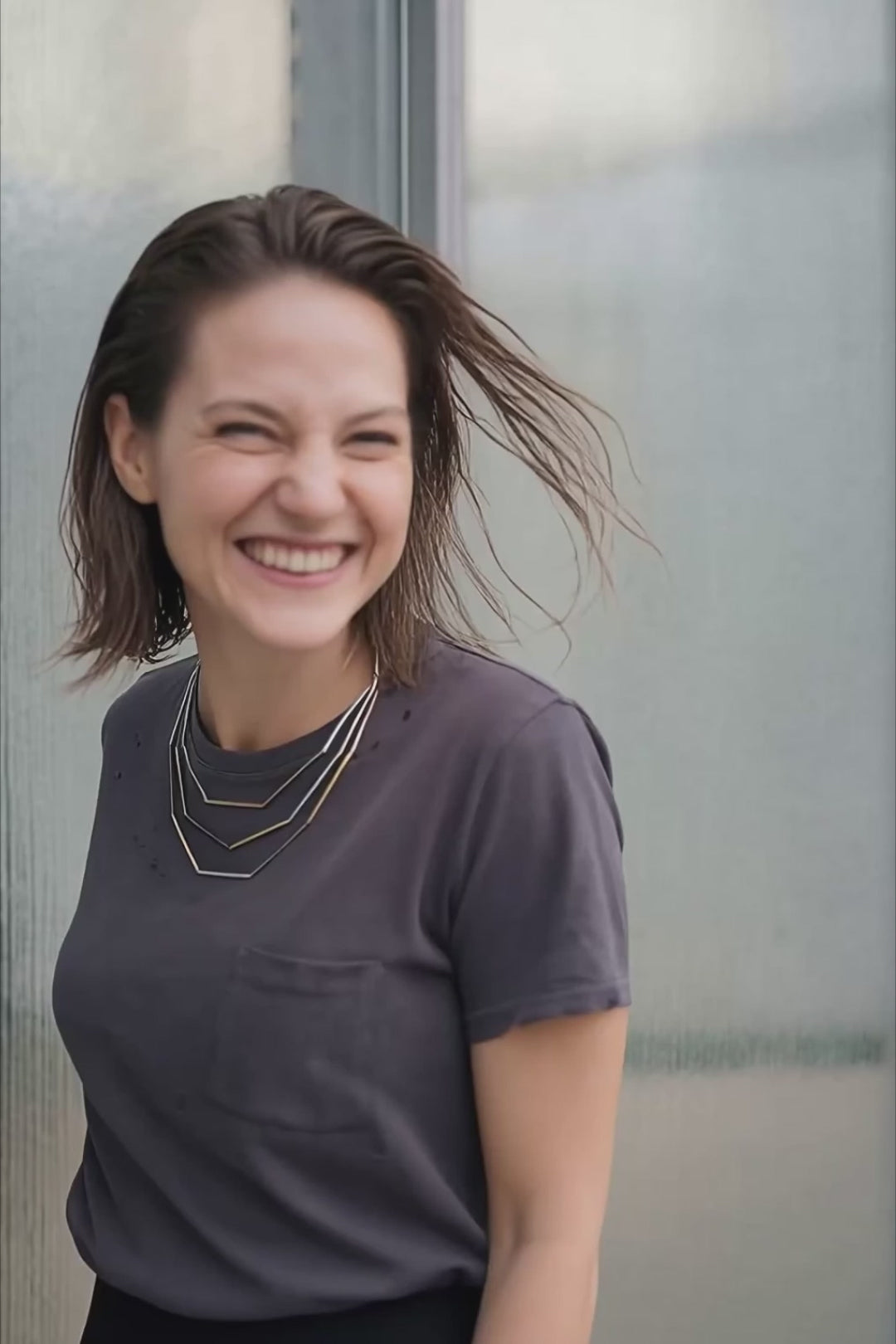 Collar Sideral Triple formado por módulos rectos que crean una estructura geométrica a tres capas ligera y cómoda de llevar.